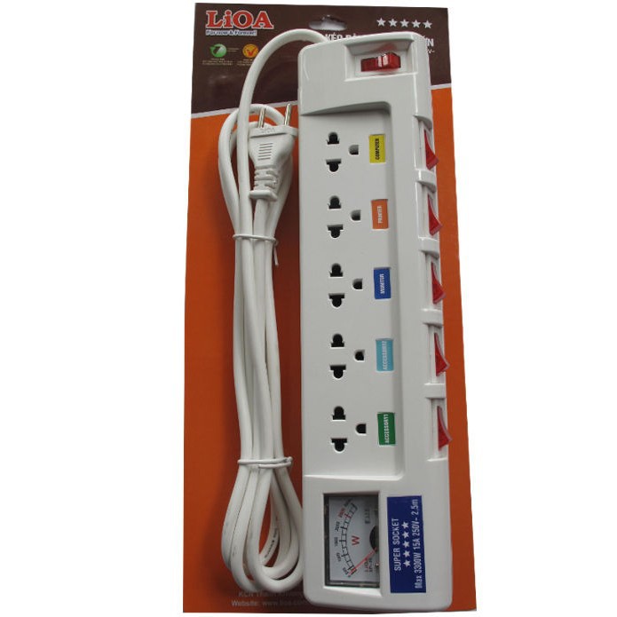 Thiết Bị Điện Gia Dụng > Mạch điện & Phụ tùng > Ổ cắm điện & Dây nối || Ổ cắm điện LIOA 5 ổ cắm có đồng hồ báo công suất 5OFSSV2.5-2 - Màu trắng (Dòng cao cấp)Còn hàng