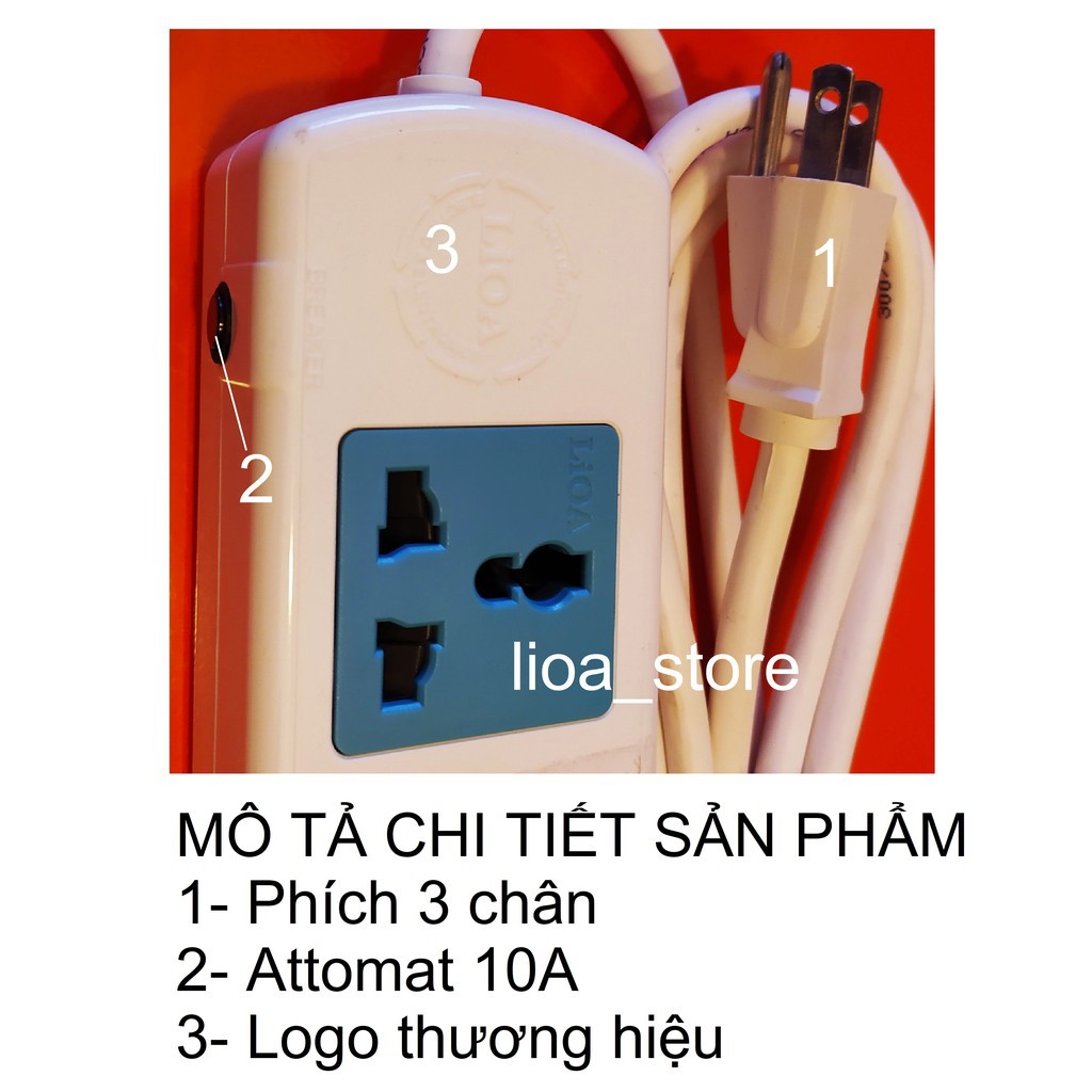 -Thân ổ cắm màu (đen và trắng) có gắn thương hiệu LiOA . Mỗi ổ cắm mang 1 màu sắc khác nhau giúp cho người sử dụng phân biệt được dễ ràng khi dùng nhiều thiết bị cùng 1 lúc. trên mỗi mặt nắp nhựa ổ cắm đều có chữ LiOA. ( để tránh hàng giả hàng nhái).ĐẶC BIỆT là các ổ cắm dều có nắp che AN TOÀN . ( tránh trường hợp nhà có trẻ con vô ý thò tay vào ổ cắm khi đang có điện . khoảng cách giữa các ổ là đảm bảo cắm được các phích có bản to.