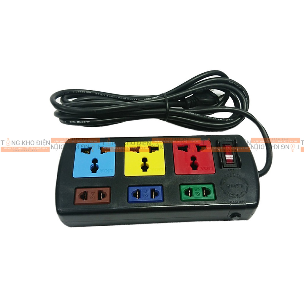 Ổ cắm điện LIOA, 6 lỗ, có công tắc, có bảo vệ quá tải, ~2200W, dây dài 3m/5m, mã: 3D3S