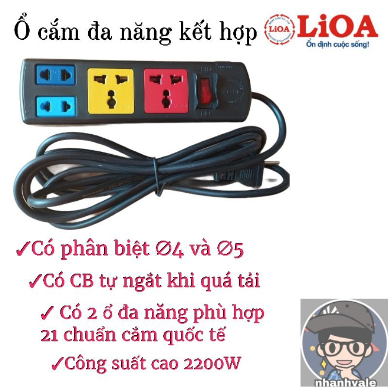Thiết Bị Điện Gia Dụng > Mạch điện & Phụ tùng > Ổ cắm điện & Dây nối || Ổ cắm điện Lioa đa năng kết hợp 2D2S32 và 2D2S52Còn hàng