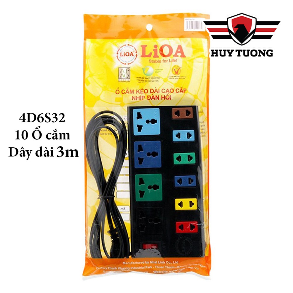 Giới thiệu Ổ cắm điện LIOA FREESHIP Ổ cắm điện LIOA 10 lỗ có công tắc, dây dài 3m/5m 1000W - Huy Tưởng