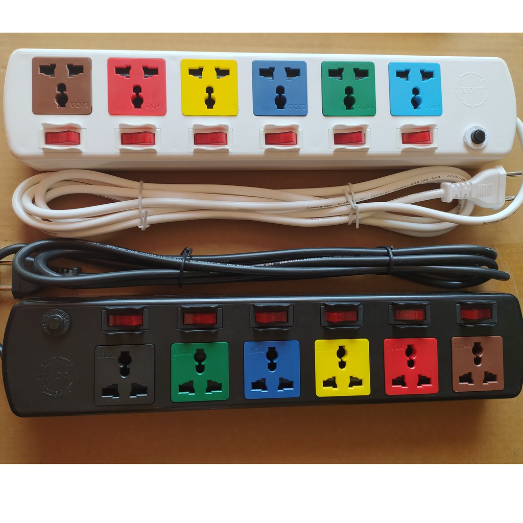- số ổ cắm 6 ổ cắm màu sắc khác nhau