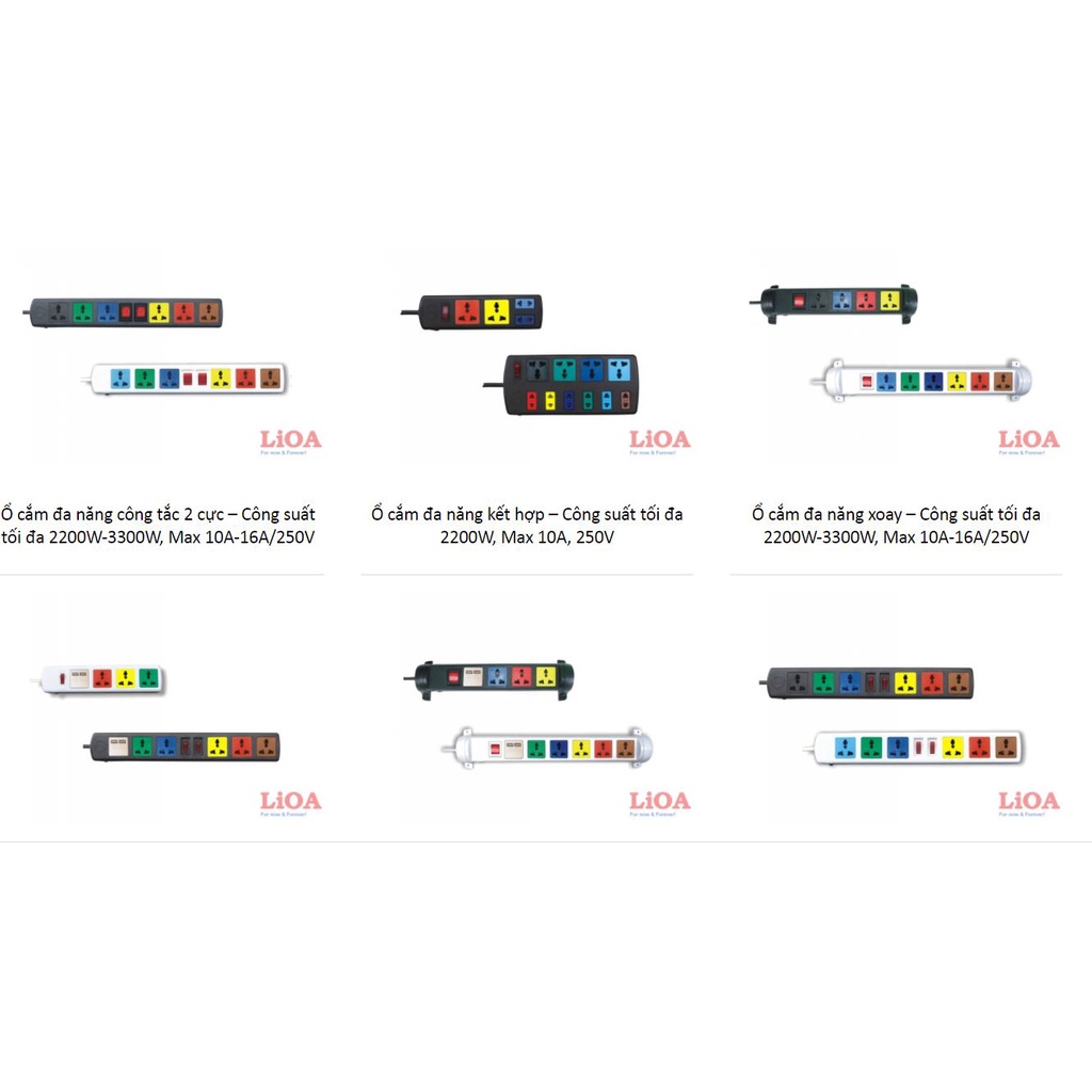 Giới thiệu Ổ cắm điện LIOA ,Ổ cắm điện LIOA 4 lỗ, 6 lỗ, 10 lỗ có công tắc, dây dài 3m/5m 1000W- Hàng chính hãng