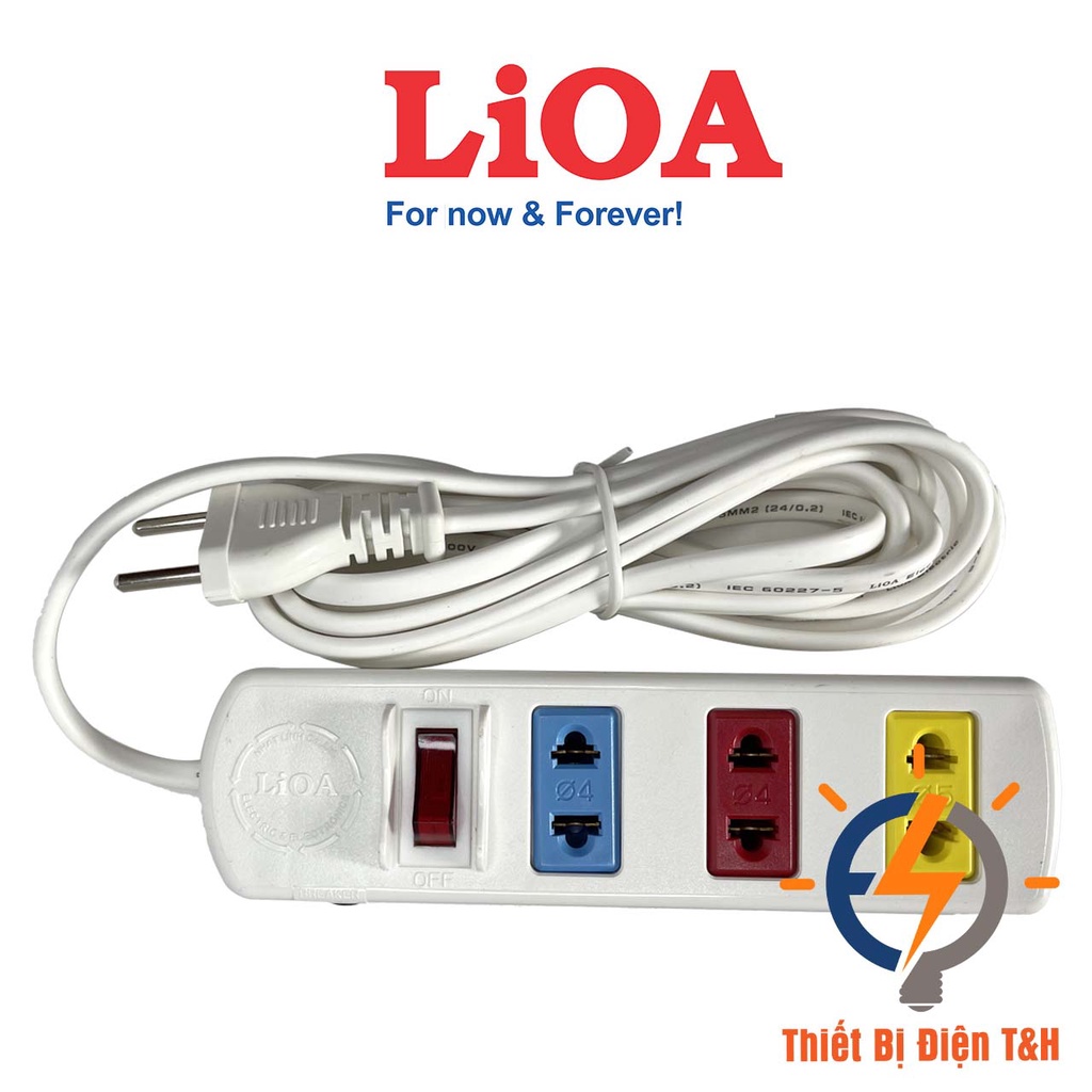 Thiết Bị Điện Gia Dụng > Mạch điện & Phụ tùng > Ổ cắm điện & Dây nối || Ổ cắm điện LIOA phổ thông, 2200W, 3 ổ cắm, 1 công tắc, dây dài 3M, 5M, 3S3W - 3S5W - Thiết Bị Điện T&HCòn hàng