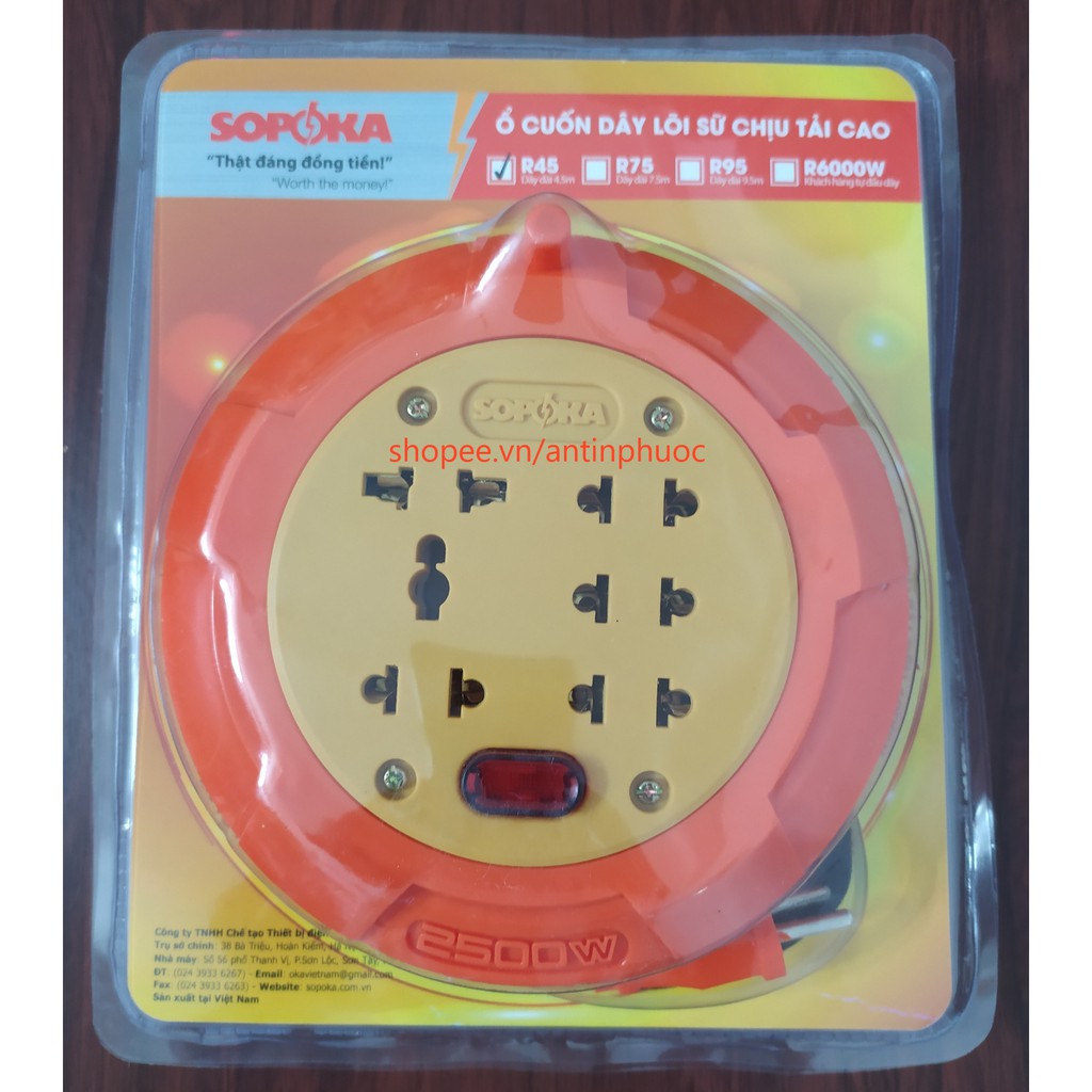 Thiết Bị Điện Gia Dụng > Mạch điện & Phụ tùng > Ổ cắm điện & Dây nối || Ổ cắm điện lõi sứ công suất cao ,chống cháy SOPOKA 2500w - ổ cắm đa năng loại quay , cuốn trònCòn hàng
