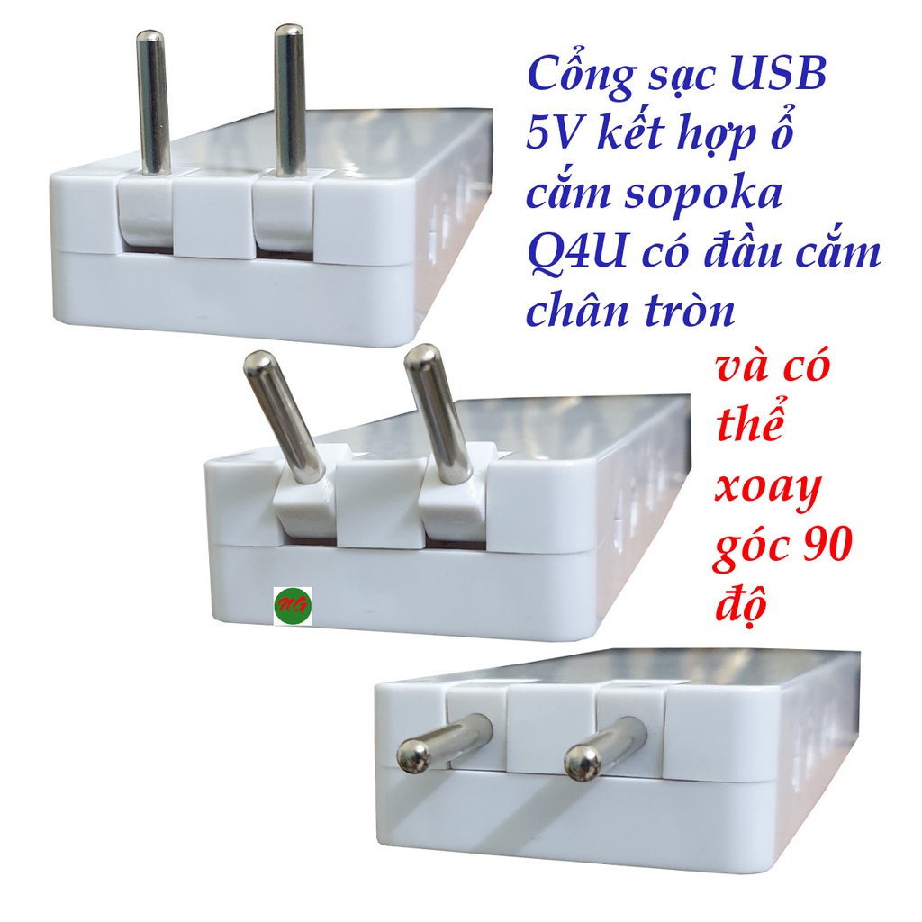 Giới thiệu Ổ cắm điện mini 4 ổ cắm tích hợp 2 cổng sạc USB 5V-2A SOPOKA Q4U