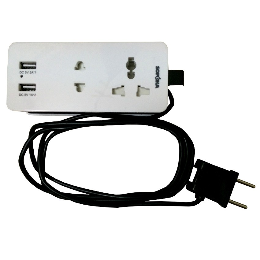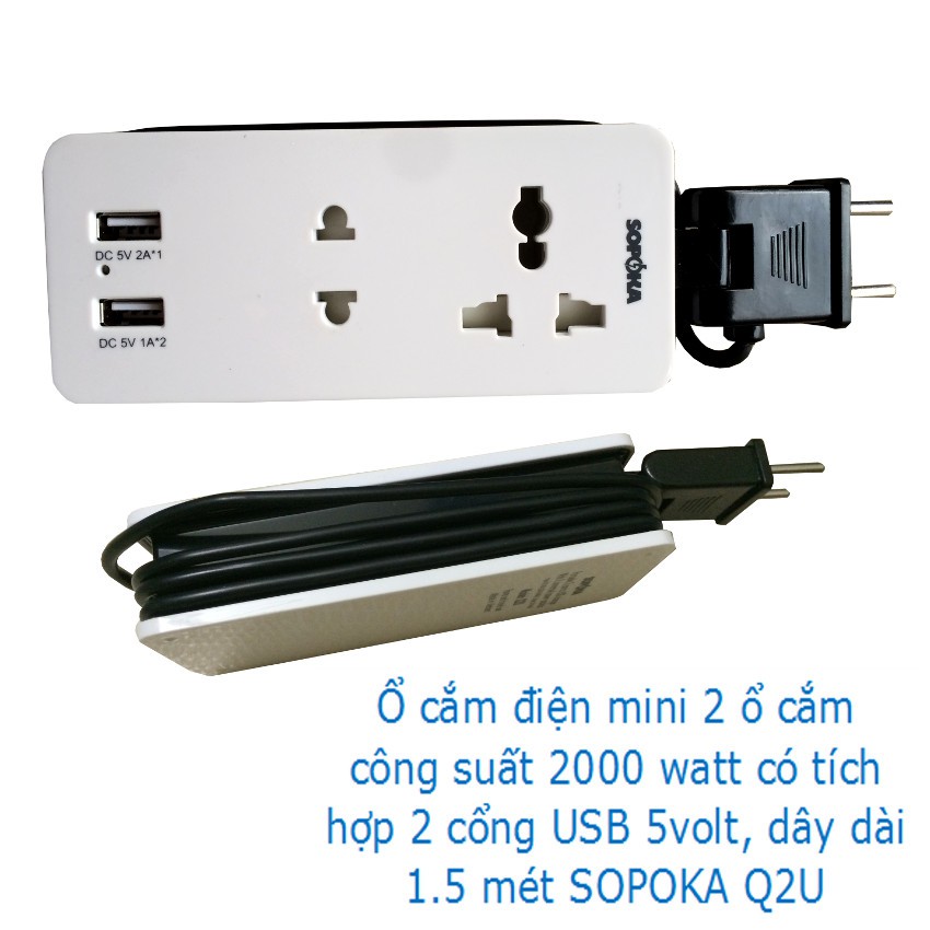 Thông tin sản phẩm Sạc 2 cổng USB 5V-2A tích hợp 2 ổ cắm điện có dây SOPOKA Q2U: