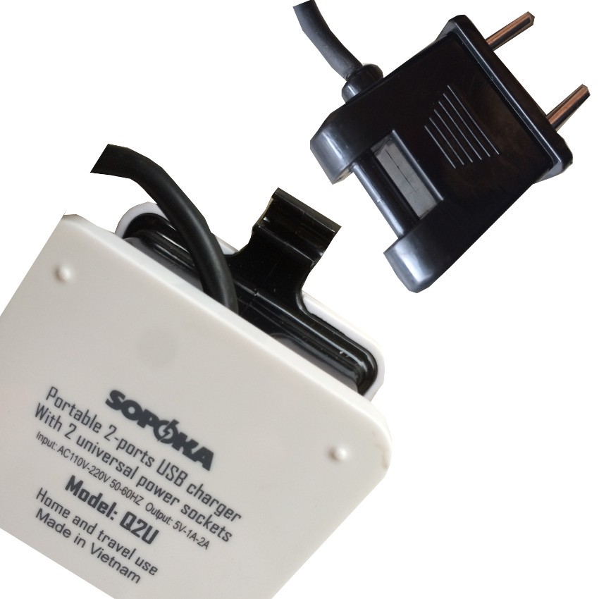 Sạc 2 cổng USB 5V-2A tích hợp 2 ổ cắm điện có dây SOPOKA Q2U là sản phẩm có thiết kế độc đáo, nhỏ gọn, tinh tế gồm:- 2 cổng sạc USB 5V 2A*1 và 1A*2