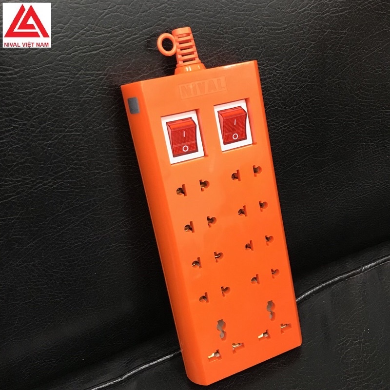 Thiết Bị Điện Gia Dụng > Mạch điện & Phụ tùng > Ổ cắm điện & Dây nối || Ổ cắm điện Nival 10cửa lõi sứ 2500w 2 công tắcCòn hàng
