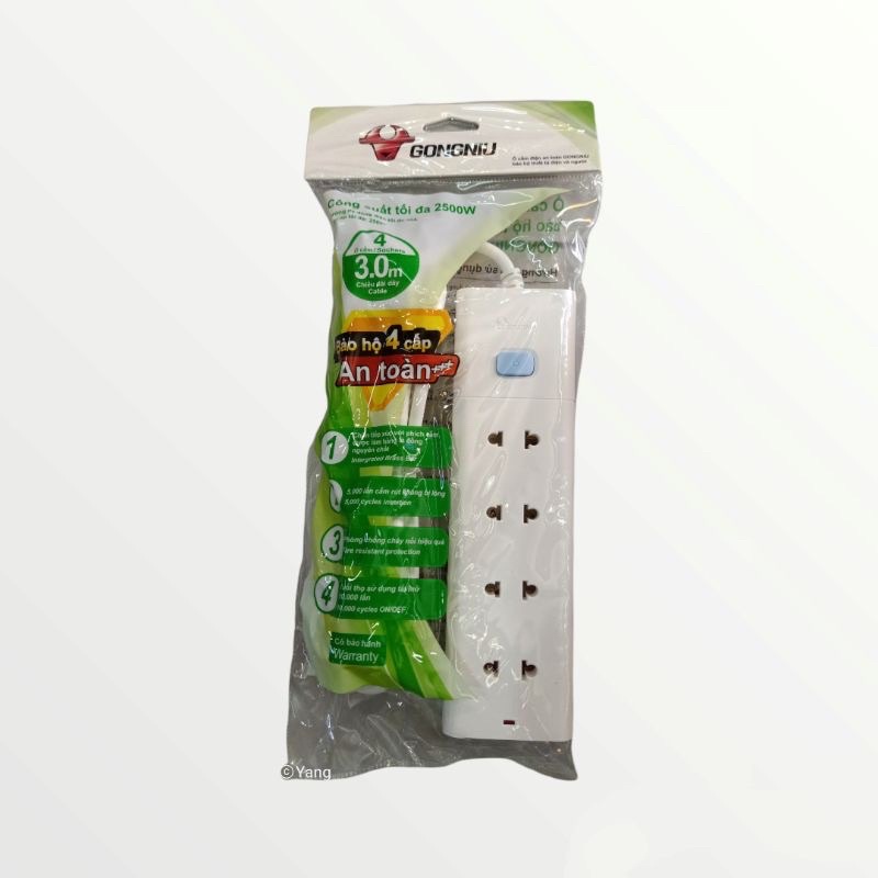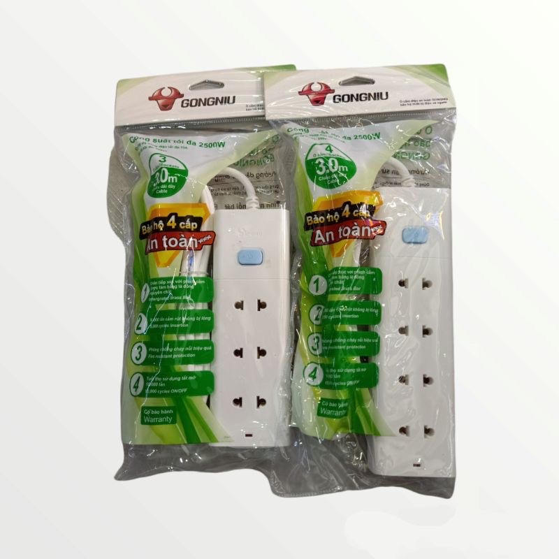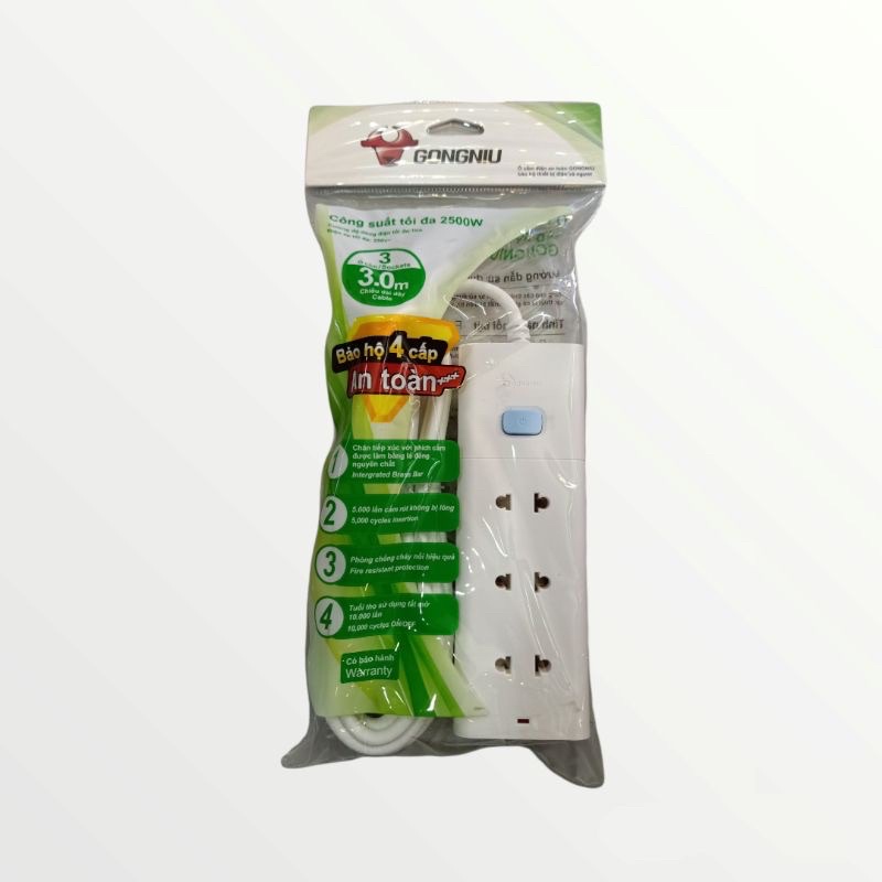 Giới thiệu Ổ Cắm Điện nối dài Gongniu 3 lỗ 4 Ổ 1 Công Tắc 2500W dây dài 3m – Trắng – Chính Hãng – V1040
