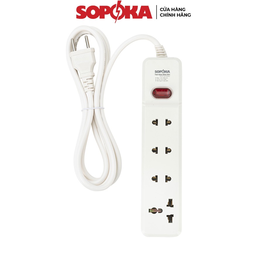 Ổ cắm điện nối dài liền dây chịu tải 1200W SOPOKA 3M1-6M1 công tắc an toàn Chính Hãng