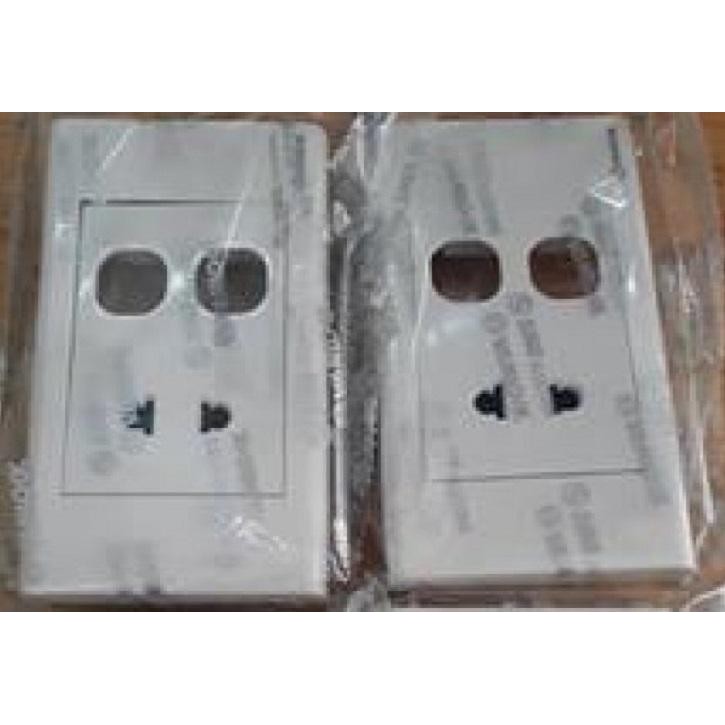 Thiết bị 2 lỗ 1 ổ cắm có màng che an toànThiết bị có lỗ tích hợp thêm công tắc, dimmer,đèn báo,....