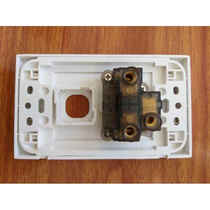 Thiết bị 2 lỗ 2 ổ cắm có màng che an toànThiết bị có lỗ tích hợp thêm công tắc, dimmer,đèn báo,....