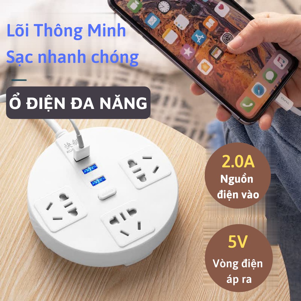 Ổ Cắm Điện, Ổ Cắm Đa Năng Thông Minh Dây Dài Chống Giật An Toàn Khi Sử Dụng TIME HOME