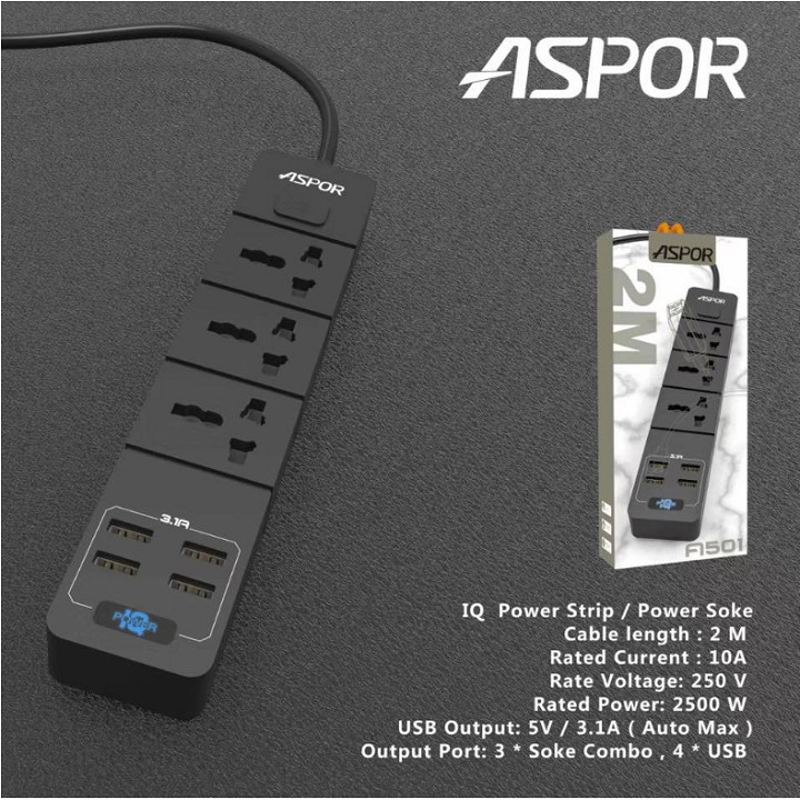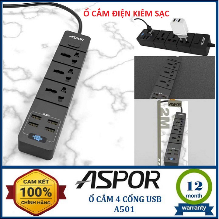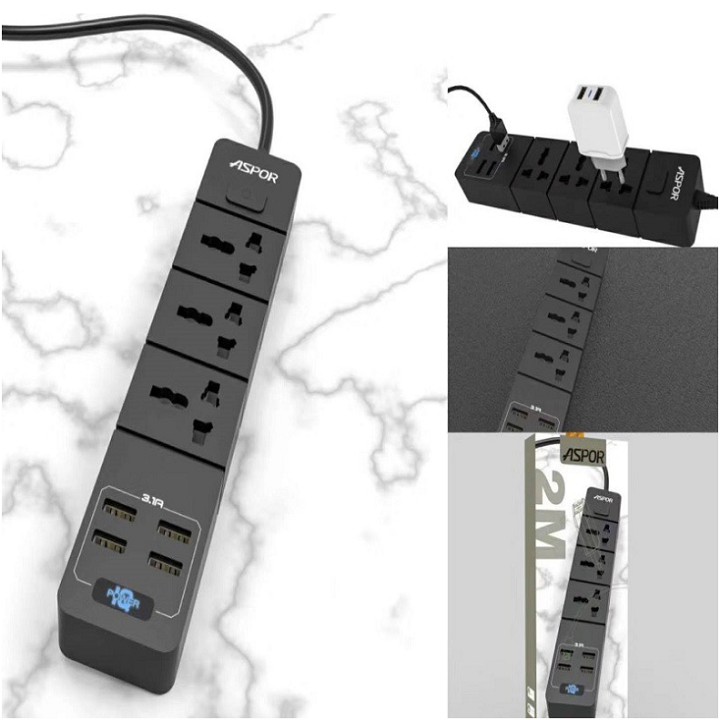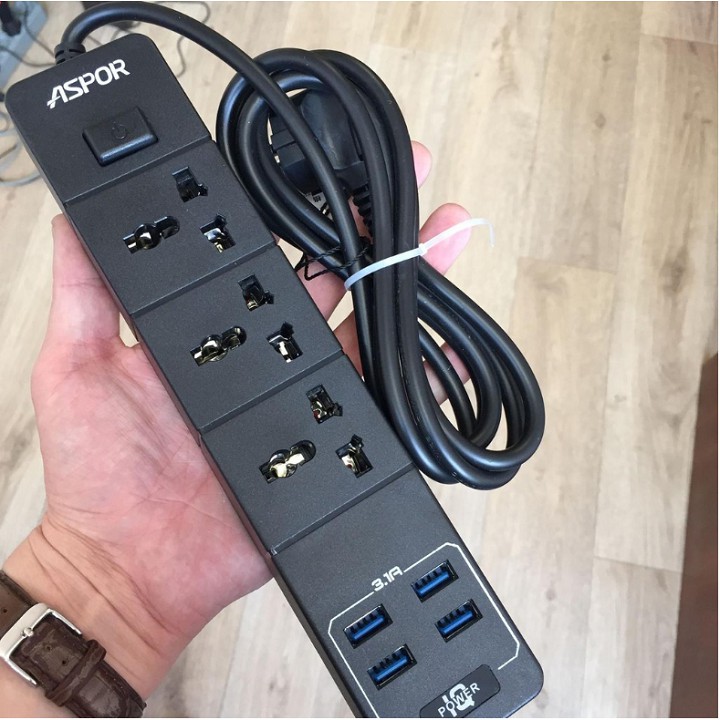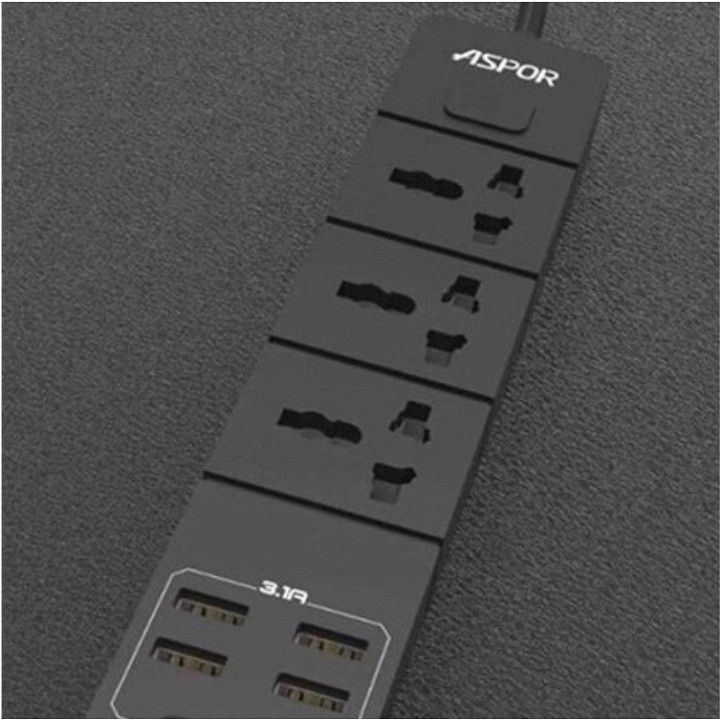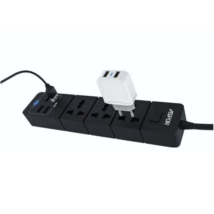 Ổ Cắm Điện Thông Minnh ASPOR 501EU Chính HãngỔ cắm điện, Ổ Cắm điện thông minh Aspor A501EU Hỗ trợ sạc nhanh 3.1A Với 4 Cổng USB,Dây dài 2M Tiêu Chuẩn Châu Âu