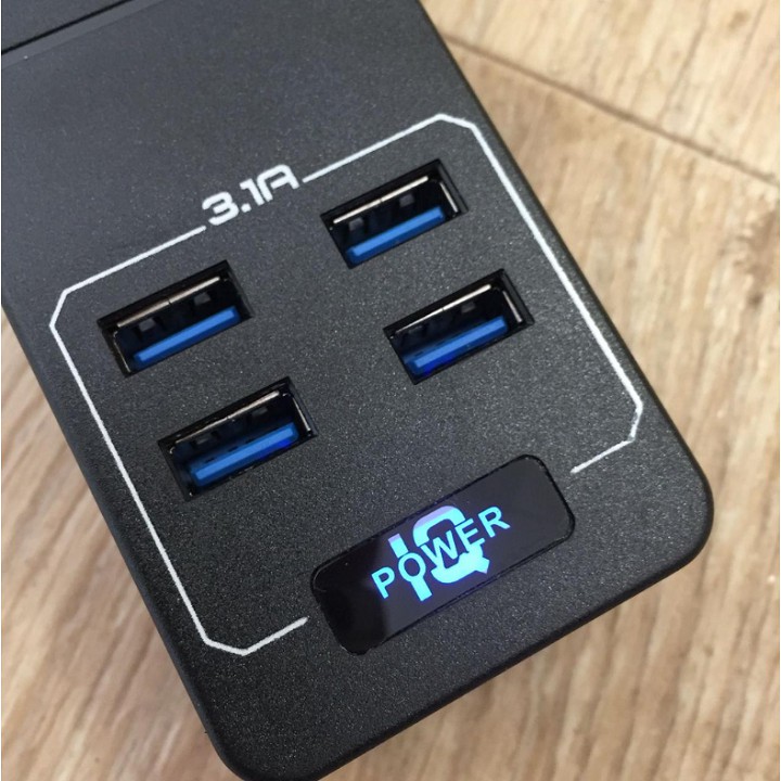 - Ổ cắm điện thông minh được thiết kế với 3 ổ cắm nguồn điện phổ biến 220V và 4 cổng sạc USB sạc siêu nhanh.