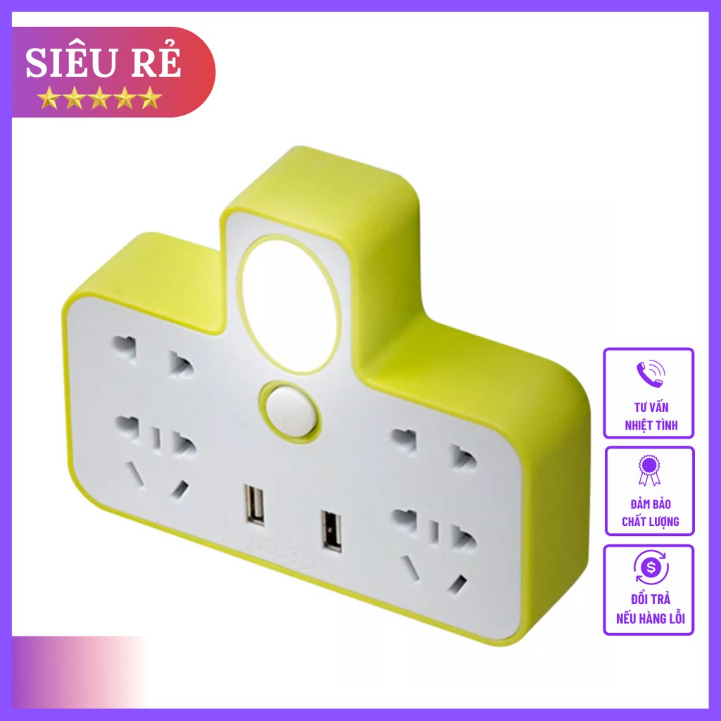 Ổ Cắm Điện Phát Sáng Hình Chữ T Kèm Cổng Sạc USB Tiện Lợi Kiêm Đèn Ngủ Đa Năng Cao Cấp