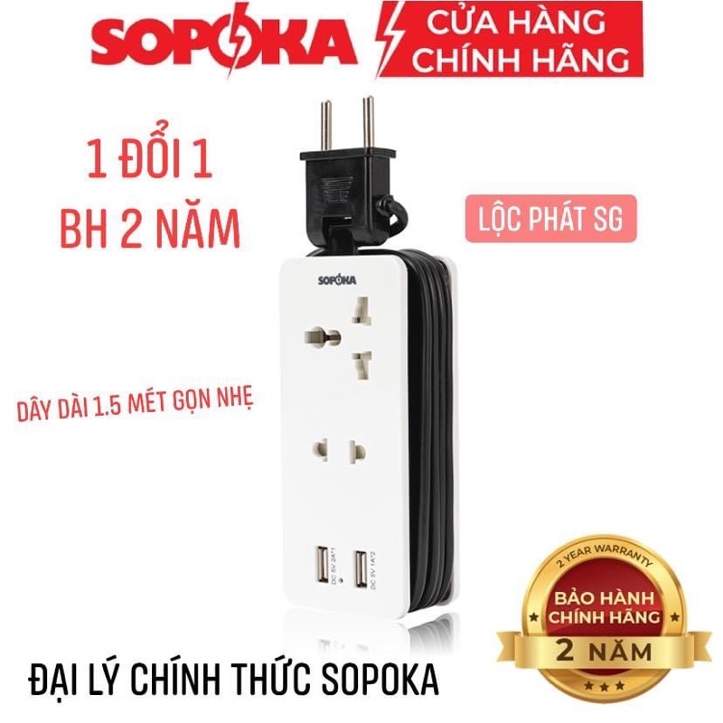 Ổ cắm điện đa năng Sopoka chịu tải 2 nồi lẩu, nồi chiên không dầu, thiết kế an toàn chống cháy chống giật BH 1 đổi 1 2 nămỔ cắm điện thông minh SOPOKA tích hợp cổng USB là sản phẩm có thiết kế độc đáo, nhỏ gọn, tinh tế gồm: