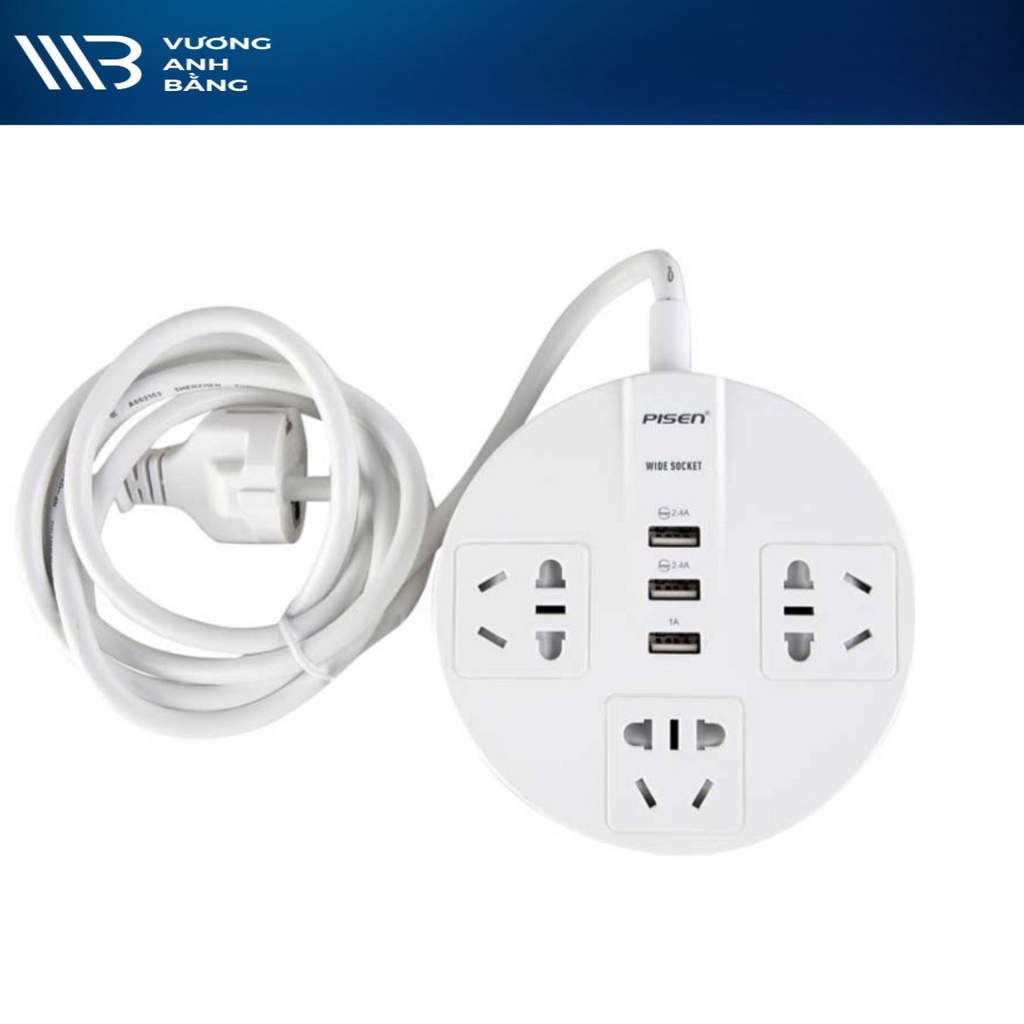 Ổ cắm điện đa năng Pisen Wide USB Multifunction (3USB, 3AC) KY-33