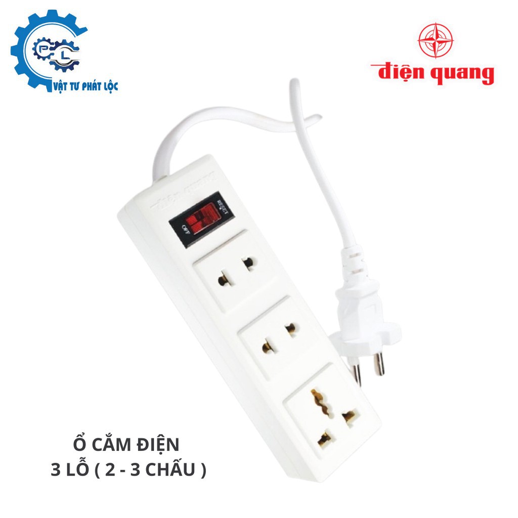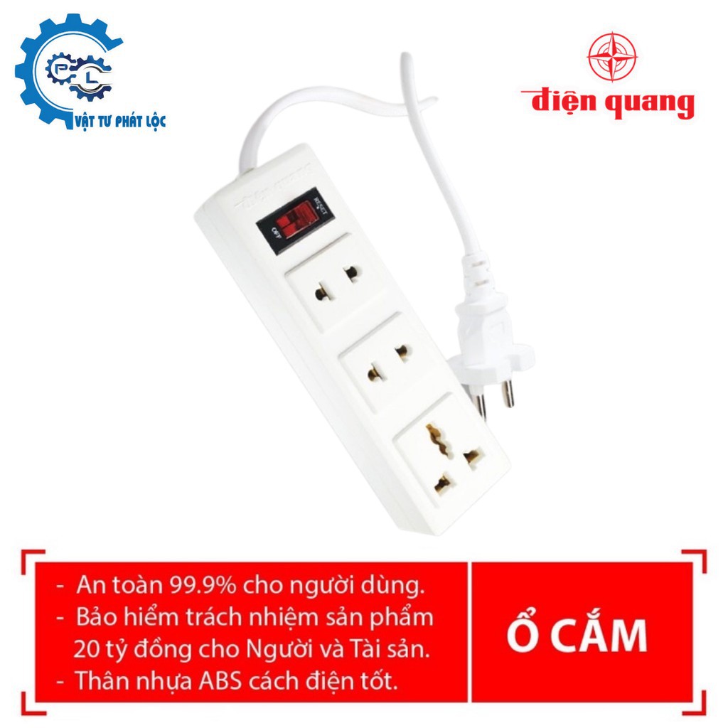Giới thiệu Ổ cắm Điện quang 3 lỗ (2-3 chấu),1 công tắc, dây 5m