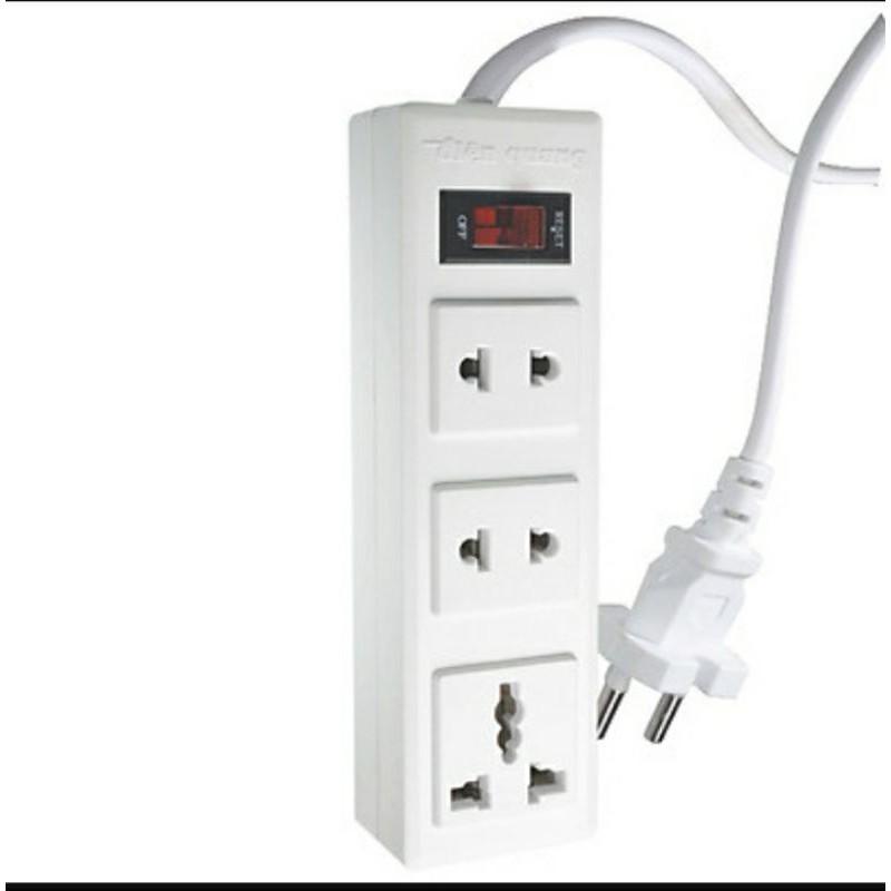 Ổ Cắm Điện Quang 3 Lỗ Có Dây▪︎Sản phẩm được thiết kế gồm 2 lỗ 2 chấu và 1 lỗ 3 chấu, rất tiện lợi cho việc sử dụng cùng lúc nhiều thiết bị cần nguồn điện trong phòng. Kết cấu lỗ cắm được chế tạo từ công nghệ cao.