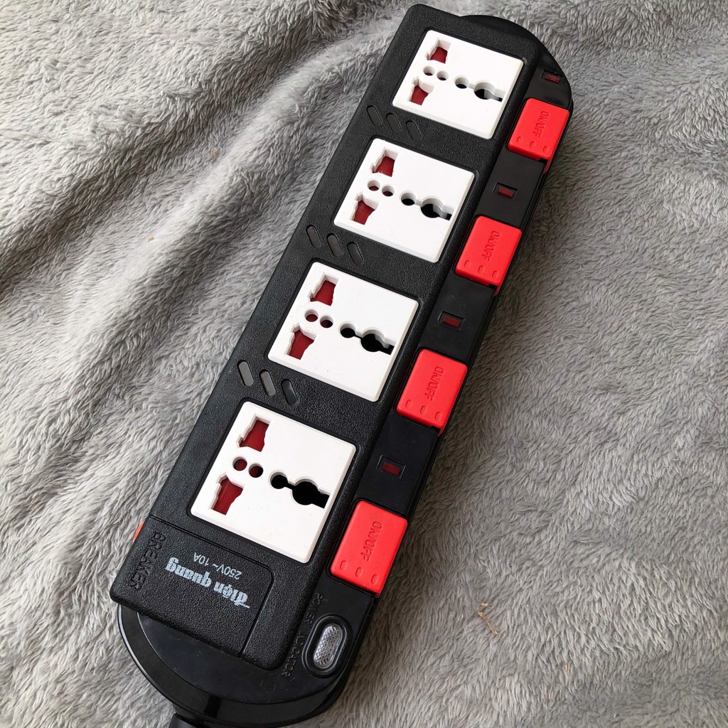 Thiết Bị Điện Gia Dụng > Mạch điện & Phụ tùng > Ổ cắm điện & Dây nối || Ổ cắm Điện Quang 4 lỗ 3 chấu dây dài 5mCòn hàng
