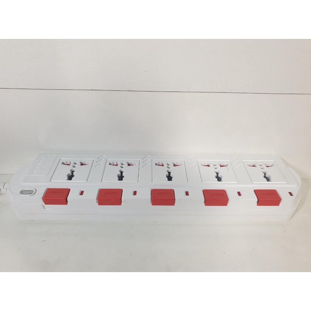 - Số công tắc: 5, mỗi ổ cắm có công tắc riêng tiện tắt mở riêng cho từng thiết bị và đèn hiển thị báo nguồn.