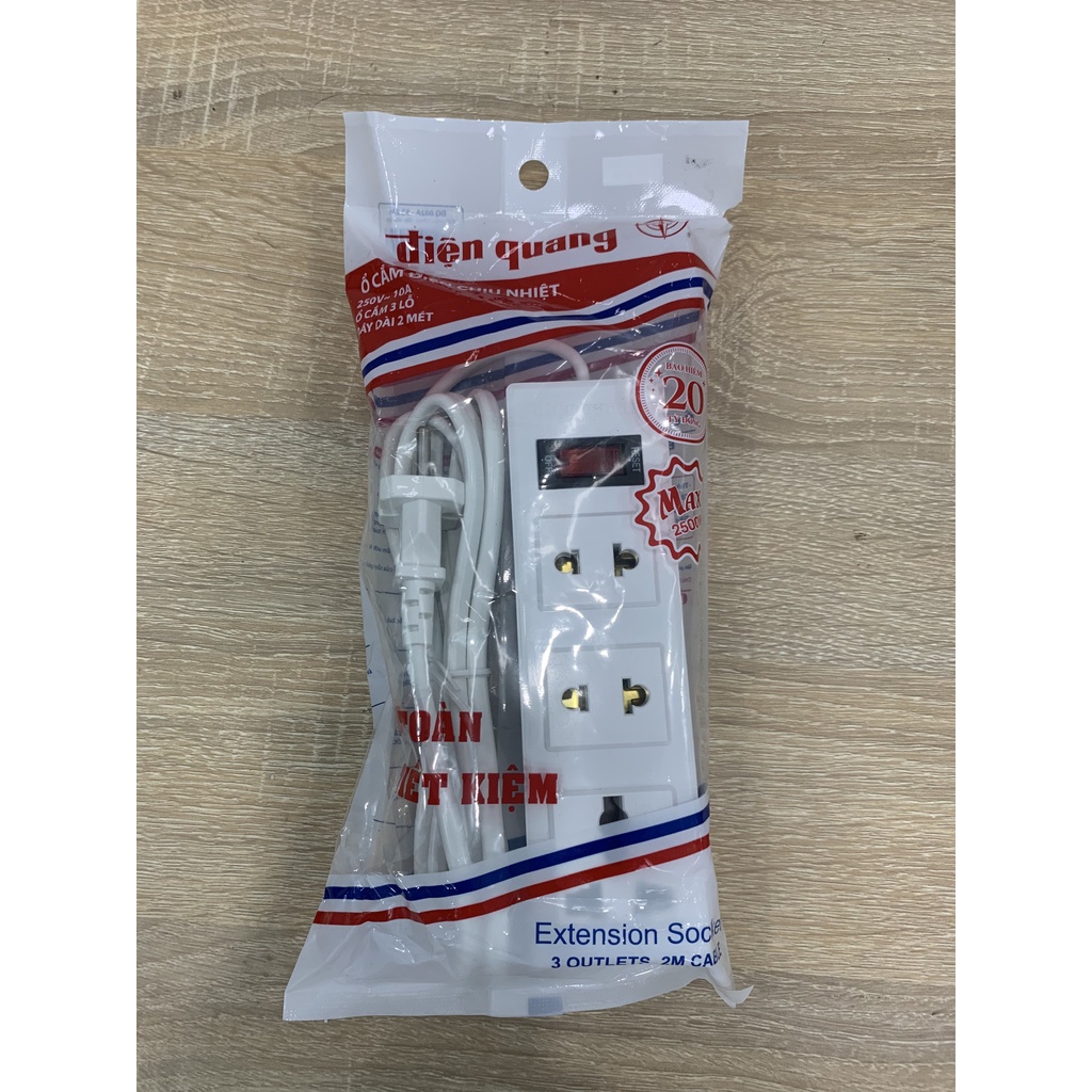 Thiết Bị Điện Gia Dụng > Mạch điện & Phụ tùng > Ổ cắm điện & Dây nối || Ổ cắm Điện Quang ĐQ 002A-02, 3 ổ 1 công tắc (2 ổ 2 chấu, 1 ổ 3 chấu), dây dài 2m và 5m - Điện gia dụng Hoàng KimCòn hàng