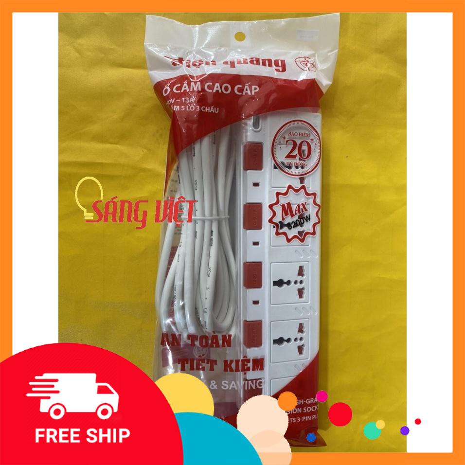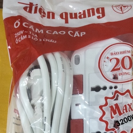 Thiết Bị Điện Gia Dụng > Mạch điện & Phụ tùng > Ổ cắm điện & Dây nối || Ổ cắm Điện Quang ĐQ ESK 2W.SM750SL (5 lỗ 3 chấu dây 5 mét màu Trắng Đỏ) ⚡️Còn hàng