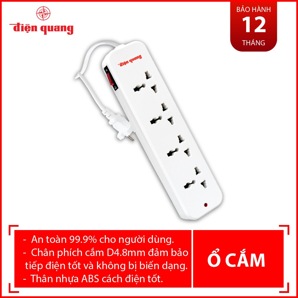 Thiết Bị Điện Gia Dụng > Mạch điện & Phụ tùng > Ổ cắm điện & Dây nối || Ổ cắm Điện Quang ĐQ ESK02 (4 lỗ 3 chấu)Còn hàng