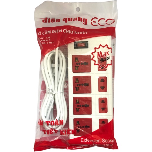 Thiết Bị Điện Gia Dụng > Mạch điện & Phụ tùng > Ổ cắm điện & Dây nối || Ổ cắm Điện Quang ECO ĐQ ESK 8ECO (8 Lỗ), DÂY 5MCòn hàng
