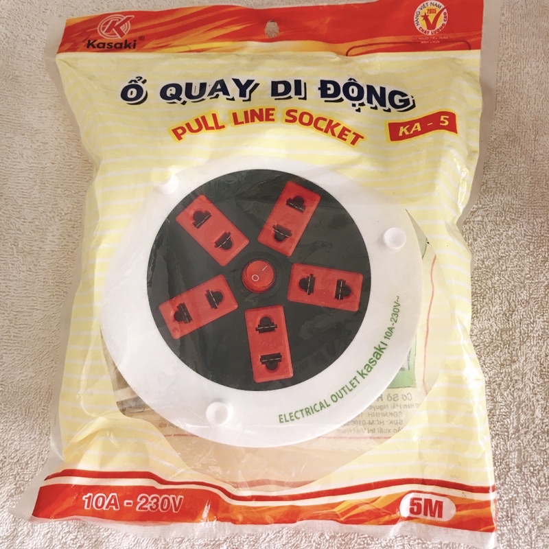 Thiết Bị Điện Gia Dụng > Mạch điện & Phụ tùng > Ổ cắm điện & Dây nối || Ổ CẮM ĐIỆN QUAY 5 LỖ 5 MÉT CÔNG SUẤT LỚN CÓ CÔNG TẮC KASAKI (VINA), Ổ QUAY DI ĐỘNG HÀNG CHÍNH HÃNGCòn hàng