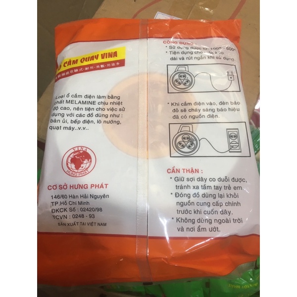 - Ổ cắm điện quay VINA có chiều dài 5m/10m nhằm tạo sự an toàn cho các thiết bị dùng điện của người sử dụng và tiết kiệm điện năng tiêu thụ.