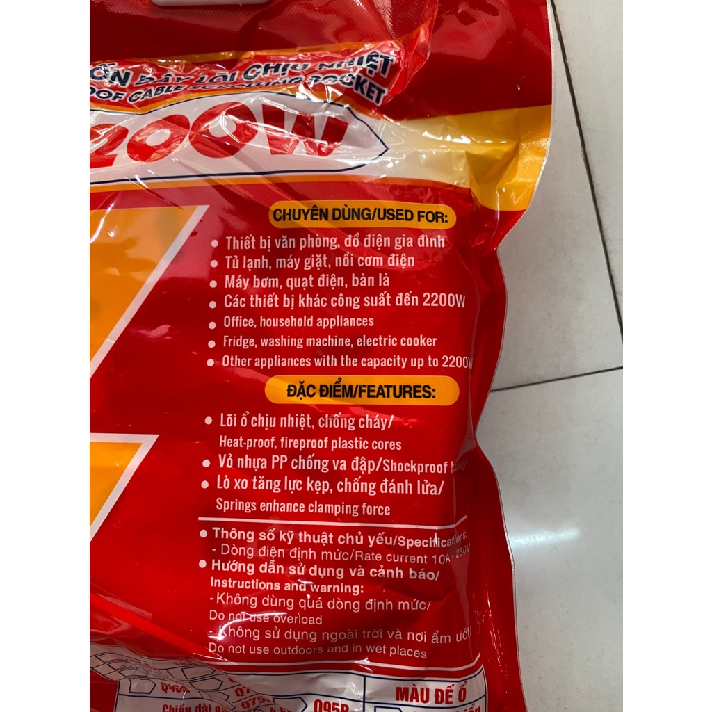 - Các thiết bị khác công suất đến 2200W