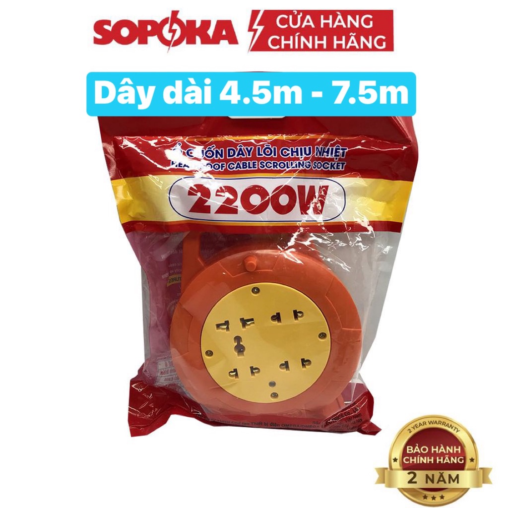 Ổ cắm điện quay tròn đa năng SOPOKA cao cấp chính hãng, dây dài 4.5m-7.5m, ổ cuốn dây lõi chịu nhiệt, chống cháy, bền