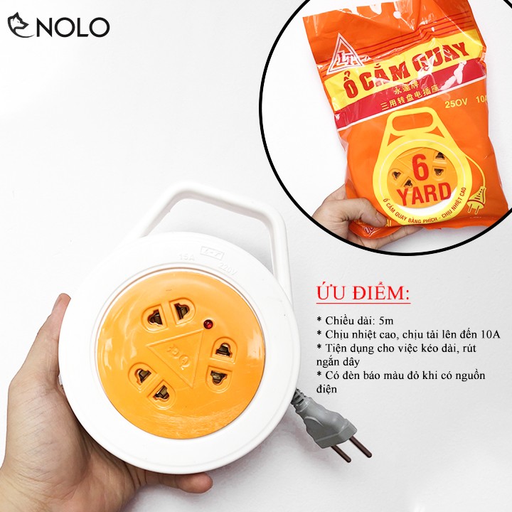 Ổ Cắm Điện Quay Vĩnh Đạt Chiều Dài 5M Hỗ Trợ Điện Áp 110-250V Tải Lên Đến 10A Có Đèn Báo Nguồn Điện