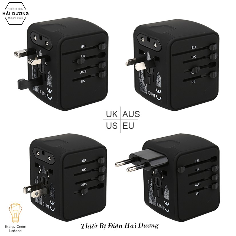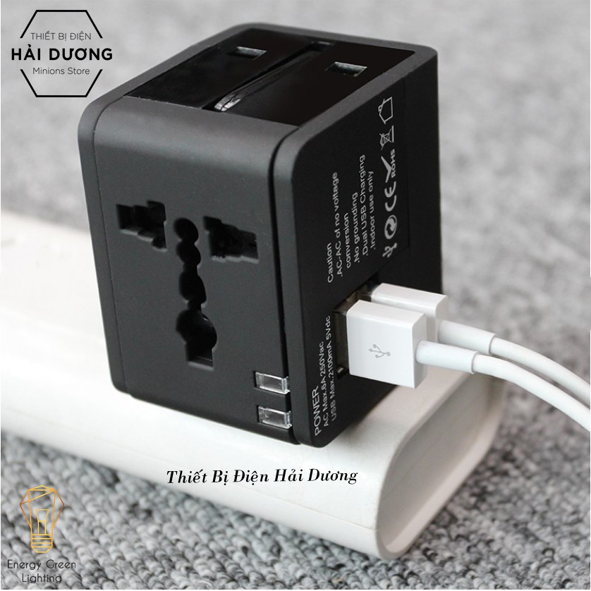 Ổ cắm điện quốc tế du lịch đa năng OC-122 2 cổng USB Travel AC Adapter - Có Video - BH 1 năm - Energy Green Lighting