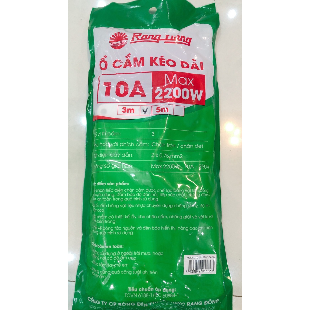 Ổ CẮM ĐIỆN RẠNG ĐÔNG DÂY KÉO DÀI 3M - CÓ NẮP CHE CHỐNG GIẬTModel: RD-S01.E03/10A-3M