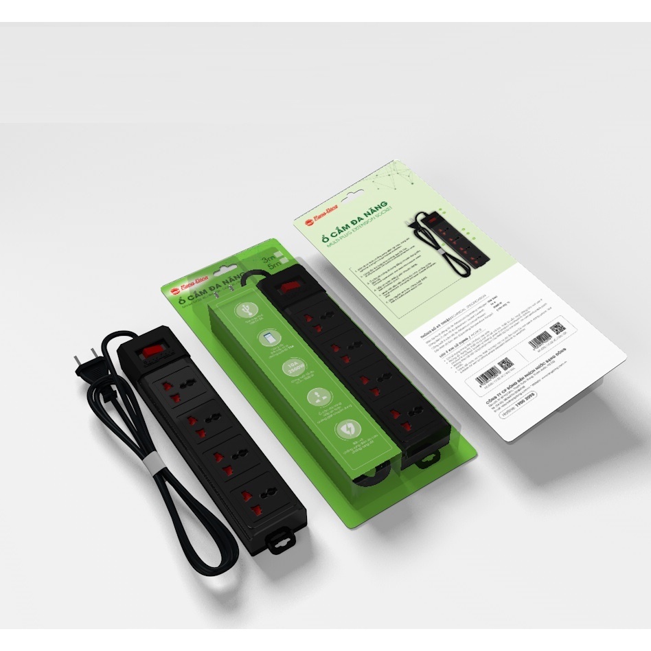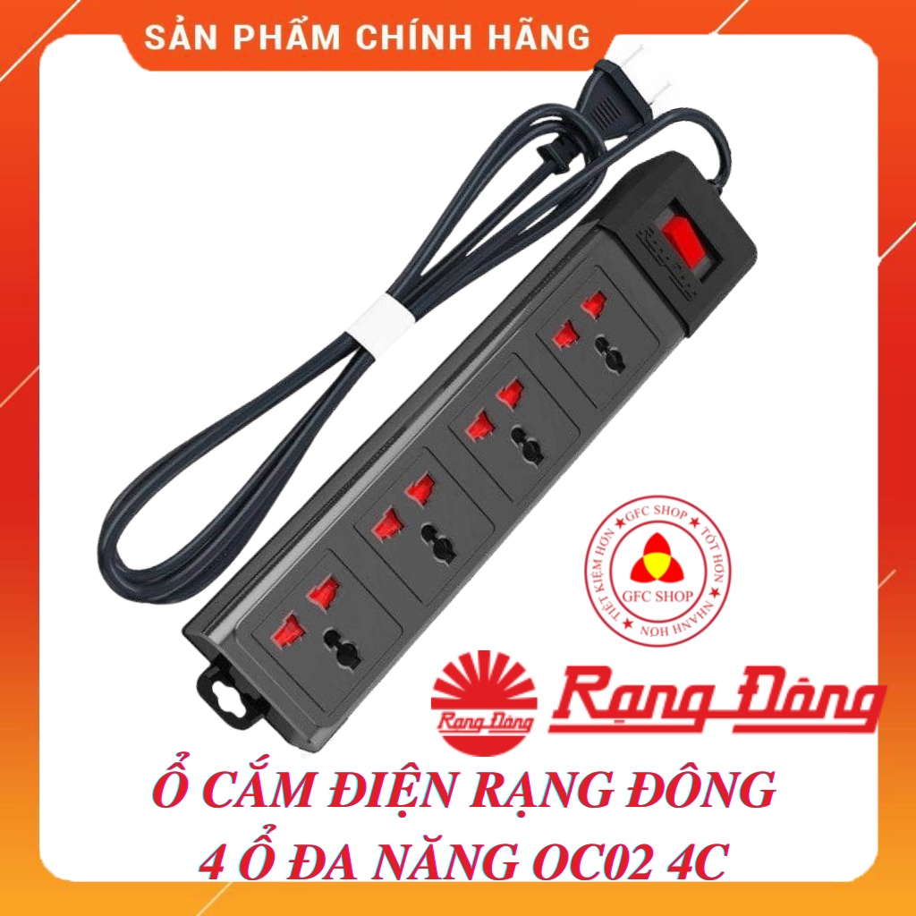 Giới thiệu Ổ cắm điện Rạng Đông 4 ổ đa năng OC02 4C dây dài 3m / 5m 10A 2500W nắp đậy an toàn chống giật