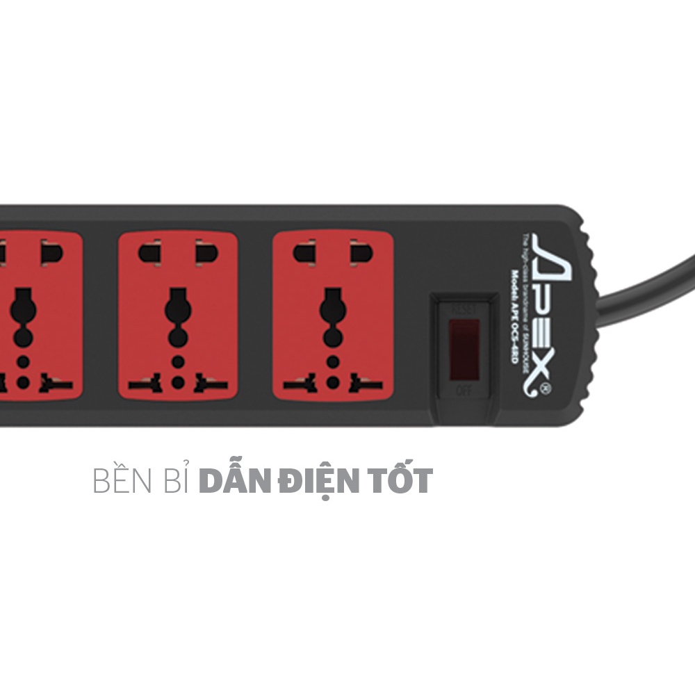 Ổ cắm điện APE-OC5-4RD thiết kế nhỏ gọn gồm 4 ổ cắm 5 chấu, ngoài ra chiều dài dây lên đến 4,5m giúp dễ dàng sử dụng ở những không gian rộng và sử dụng cho nhiều thiết bị cùng lúc.