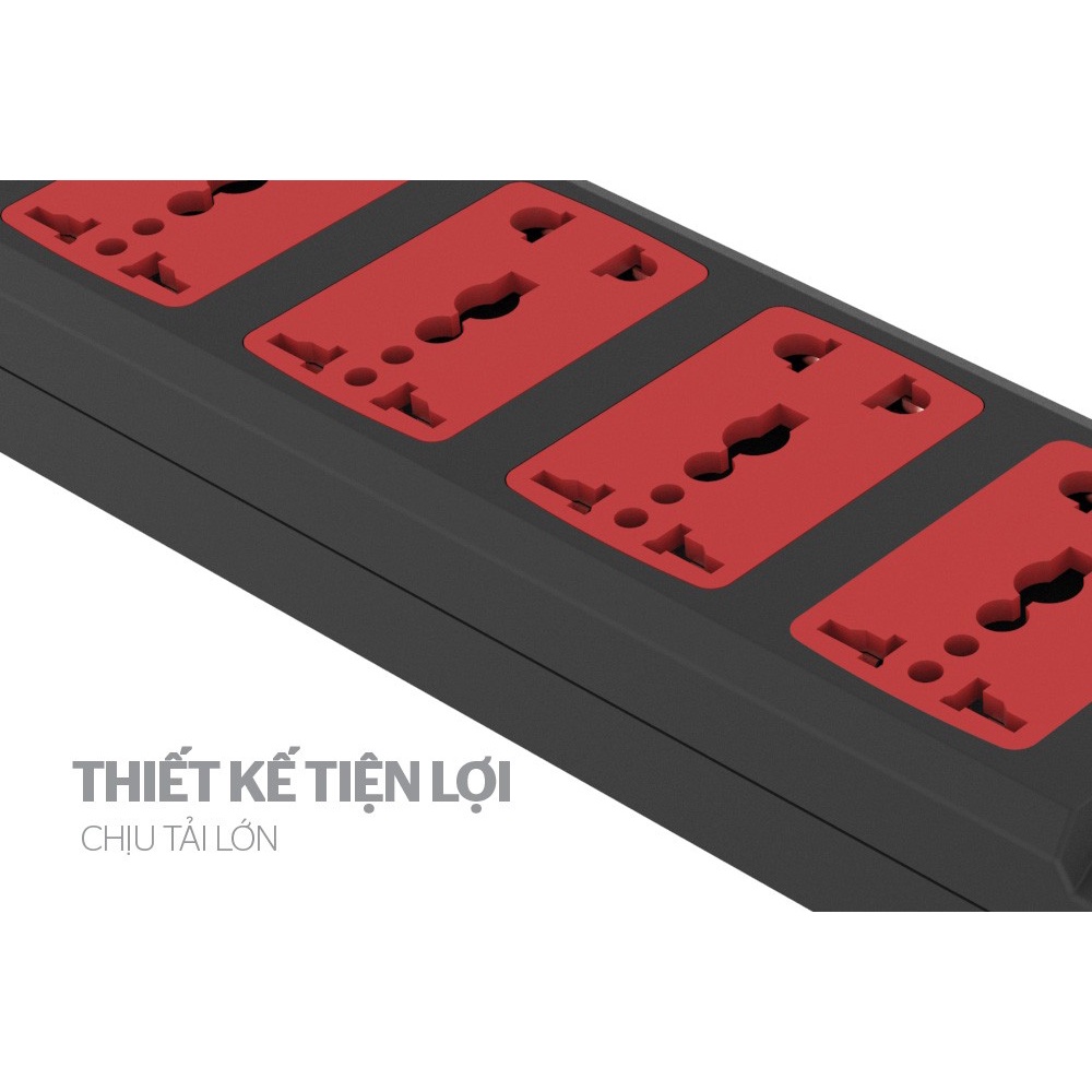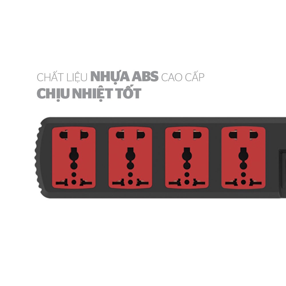 ✔ 4 ổ cắm với 5 chấu 2 chiều, chiều dài dây 4.5m