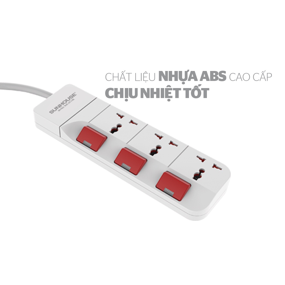 ✅ Ổ cắm điện Sunhouse SHE-OC1-3R chính hãng Sunhouse có thiết kế gọn, nhẹ cùng màu trắng sáng, sạch dễ dàng vệ sinh khi bám bẩn. Sản phẩm đạt tiêu chuẩn an toàn quốc gia với nhựa chống cháy, mạch điện bằng đồng nguyên khối.