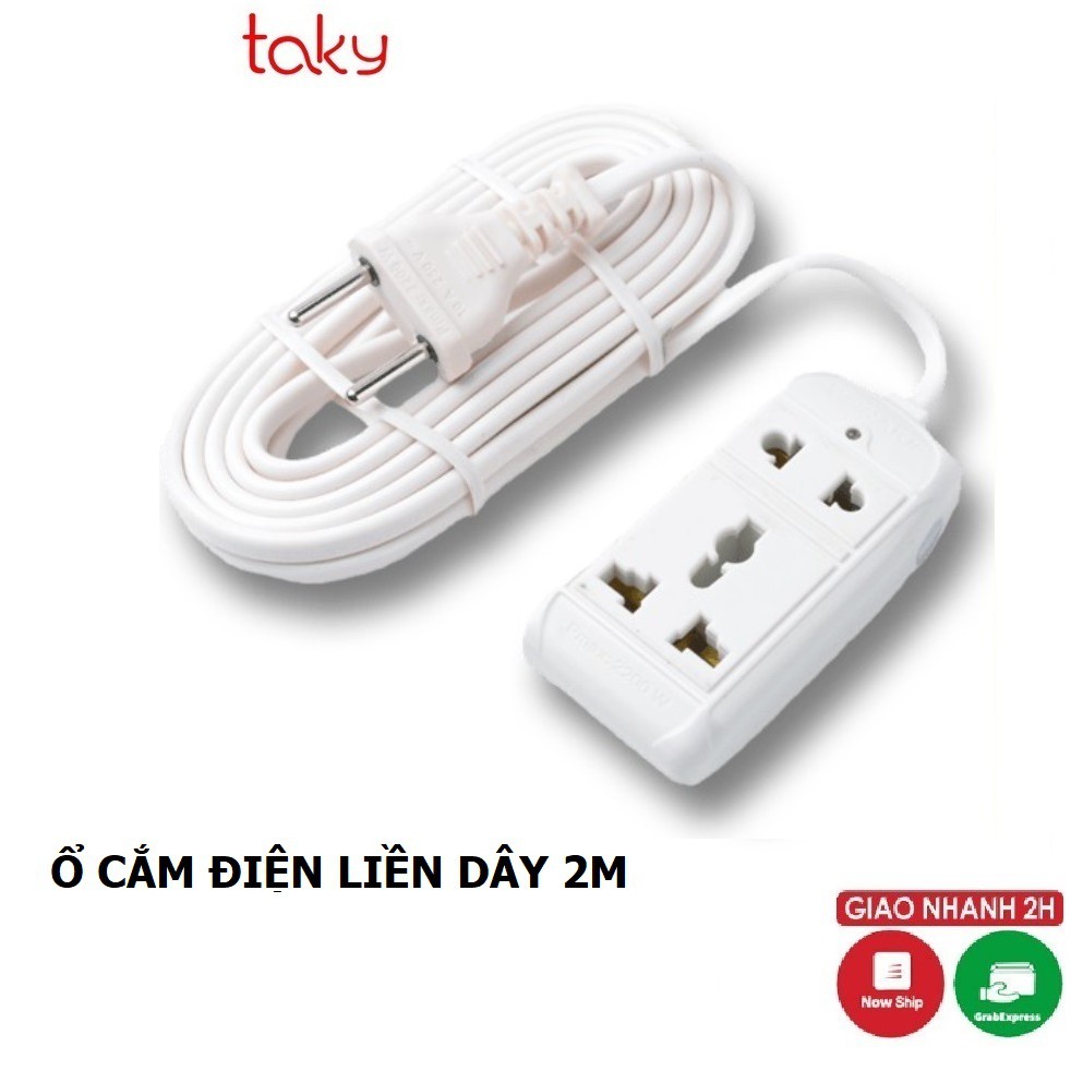 Giới thiệu Ổ Cắm Điện - Taky, Liền Dây Nối Dài 2 m, Cắm 2 Lỗ 2 Chạc Và 3 Chạc, An Toàn, Tiện Dụng Trong Gia Đình, 8608
