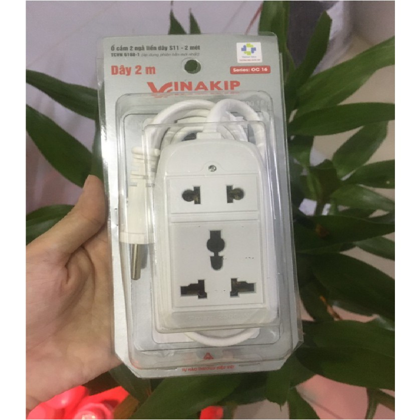 ✔ ổ điện VinaKip 2 ngả đa năng , 1 ổ thường 1 ổ đa năng.