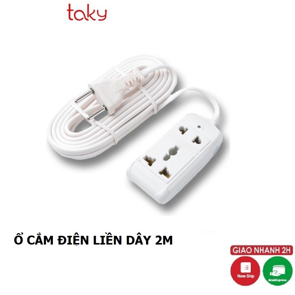 Ổ Cắm Điện - Taky, Liền Dây Nối Dài 2 m, Cắm 2 Lỗ 2 Chạc Và 3 Chạc, An Toàn, Tiện Dụng Trong Gia Đình, 8608