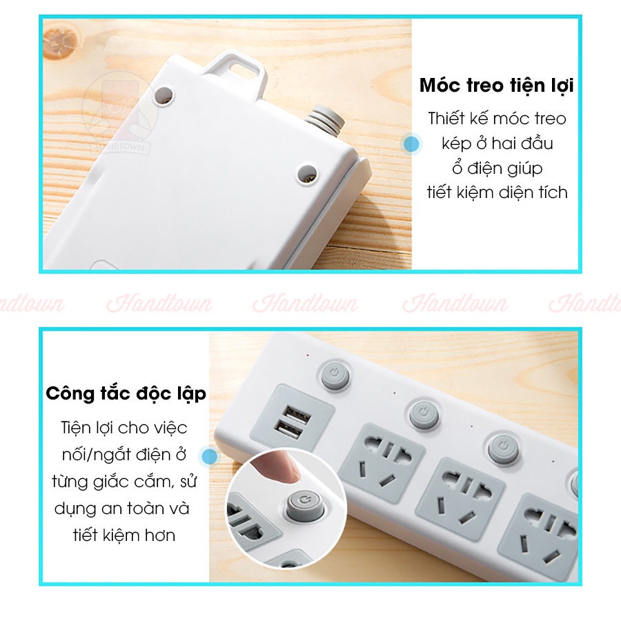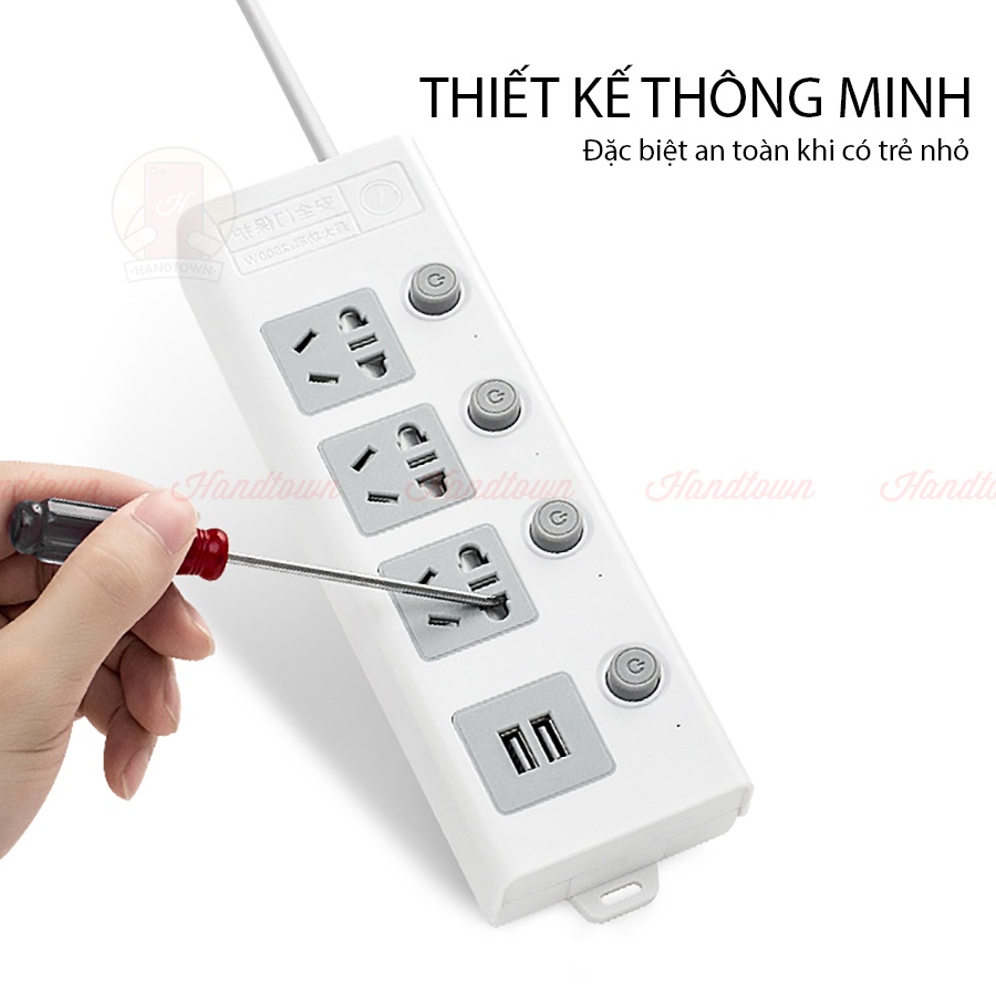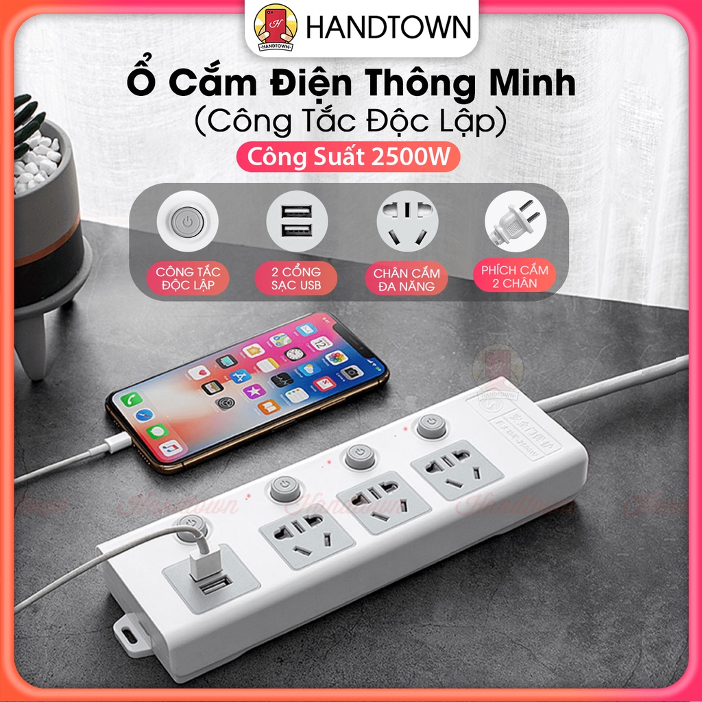 Giới thiệu Ổ Cắm Điện Thông Minh 4 Cổng 2500W 2 Cổng Usb Độc Lập Tự Động Dài 1.8m An Toàn Tiết Kiệm Điện Năng Handtown
