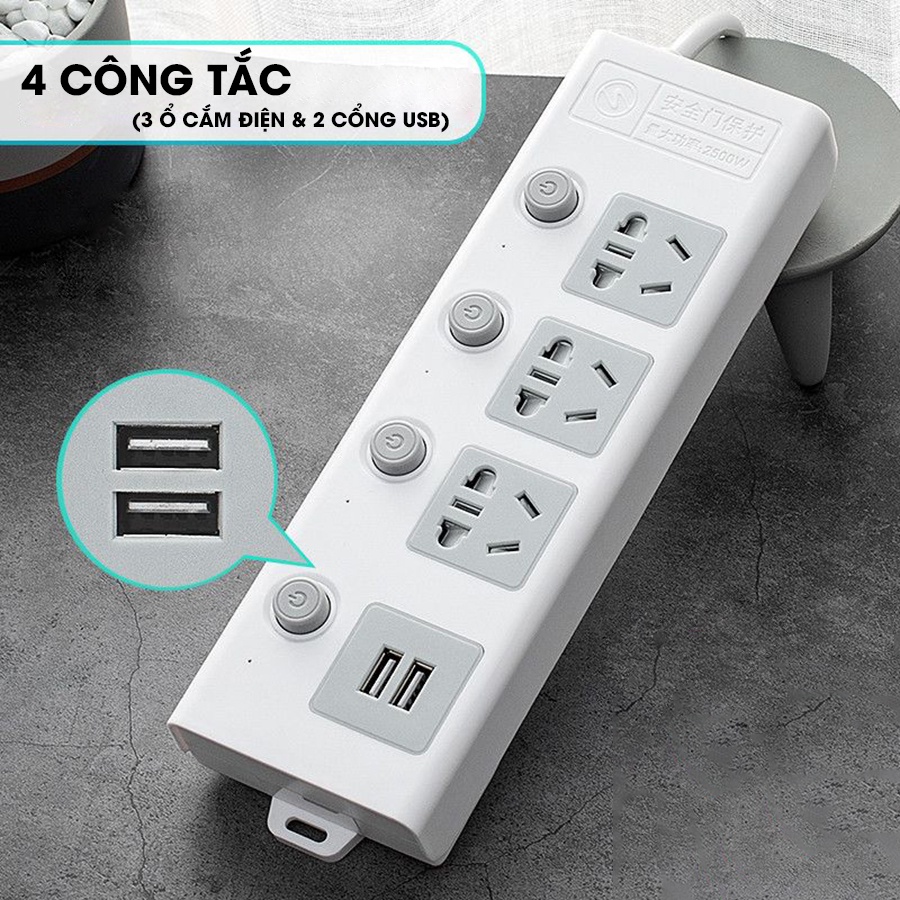 - 4 Công tắc bật tắt cho 4 ổ cắm