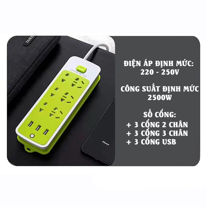 Ổ cắm điện thông minh 6 lỗ cắm kèm 3 cổng sạc USB tiêu chuẩn
