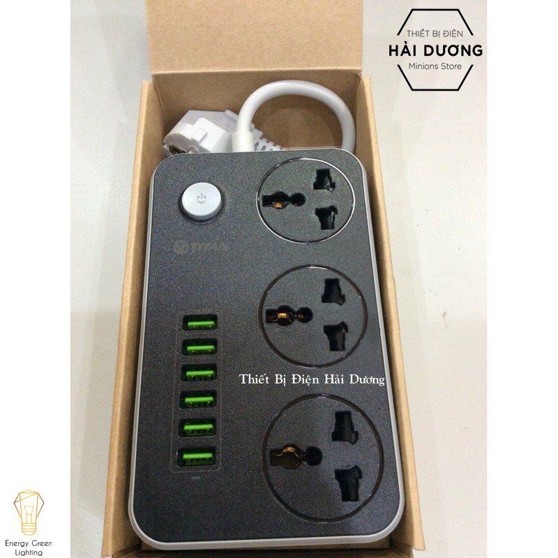 Ổ gồm 3 cổng AC 220V, 6 cổng USB sạc nhanh (max 3.4A), có chip IC thông minh tự ngắt khi quá tải hoặc dòng điện vào lên quá 250V, bảo đảm an toàn cho người sử dụng