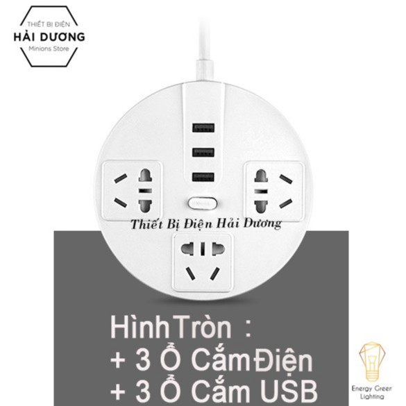 + Hình Tròn : 3 ổ cắm điện - 3 ổ cắm USB